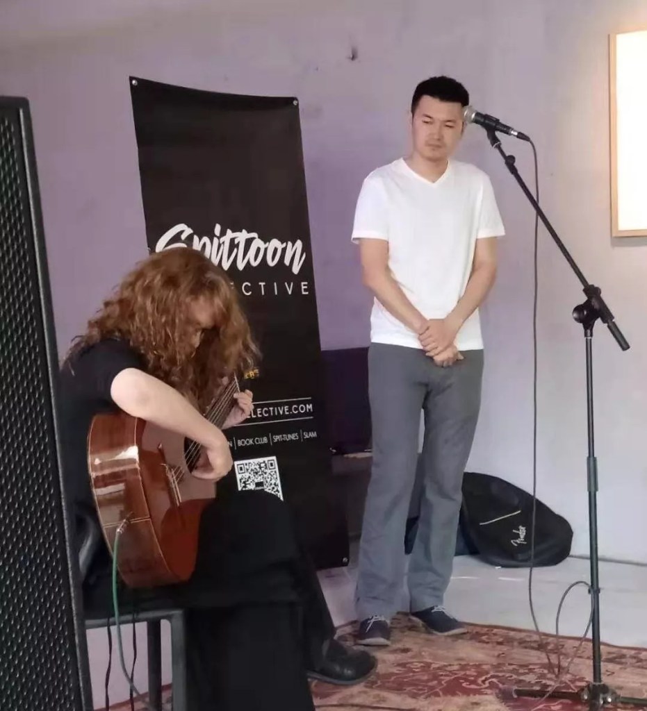 Another Art Gallery in Shunyi hosted a new Spittunes project in which poets chose and wrote poems inspired by works in the gallery’s current exhibition — The Common of Difference. Each poet then worked with a paired musician to create a song inspired by both the poem and the artwork. A fascinating event, and a way of announcing Spittoon’s new presence in Shunyi.