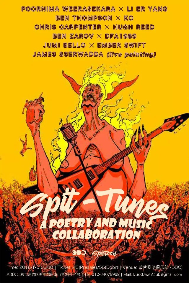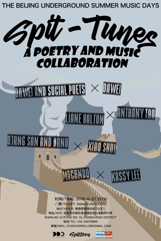 Born from the Spittoon Arts Collective, Spittunes is a project that pairs a band or musician with a poet to collaborate on a special piece inspired by the poet’s work. First pitched to the staff at Dusk Dawn Club at the beginning of 2017, the format grew into one of Spittoon’s most celebrated events — a night that brought Beijing’s music and literary scenes together in a genuinely unique way. What follows is the full timeline.