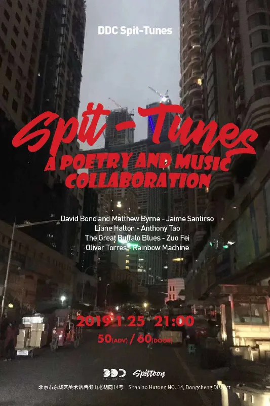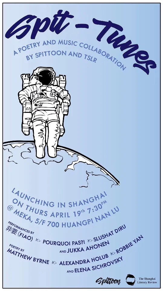 Musicians: Fiao, Pourquoi Pas, Slushat Diru, Jukka Ahonen. Poets: Matthew Byrne, Alexandra Holub, Robbie Yan, Elena Sichrovsky. The first Spittunes event outside Beijing.