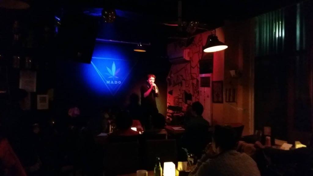 Spittoon began at Mado Bar on Baochao Hutong in Beijing’s Gulou district in May 2015. Matthew Byrne, a British poet with an MA in Creative Writing from Manchester Metropolitan University, had been living in Beijing since 2013 and wanted to create a space for people from different continents to share poetry over good company. The first readings happened under dingy lighting in front of a wall with a cannabis leaf painted on it. The space wasn’t big, but the sound was good and the crowds, however drunk, were attentive. One Thursday per month, Spittoon Poetry Night became a guaranteed good time.